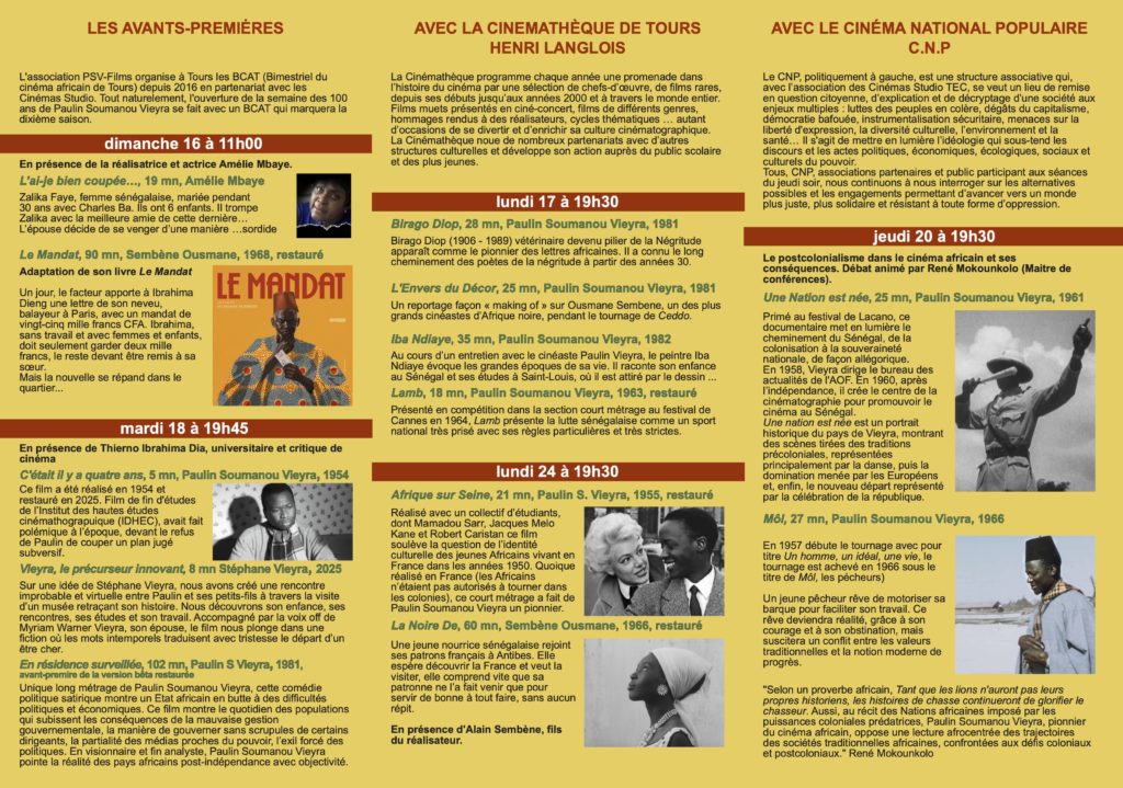 Les événements Brésil en France associés à l’oeuvre de Paulin Soumanou Vieyra se dérouleront du 12 au 24 novembre aux Cinémas Studio de Tours.
